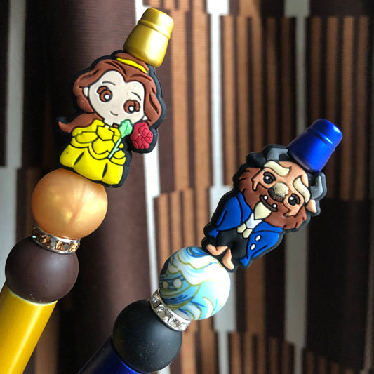 "Beauty and The Beast" 2pc Yellow and Blue Couples Beaded Pen