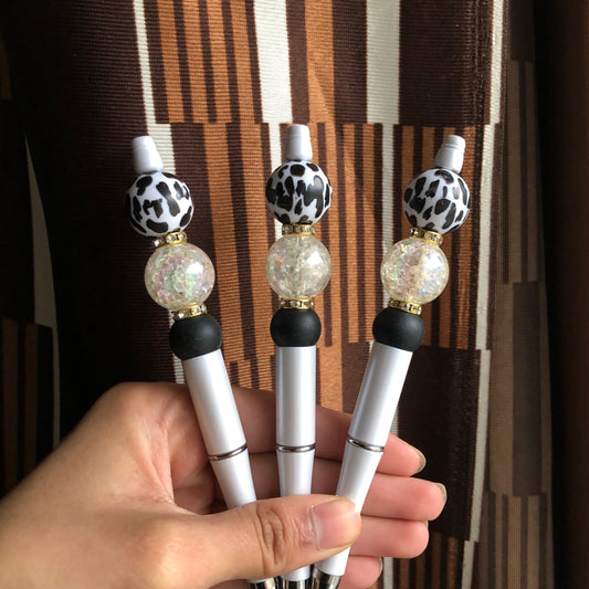 "Black and White" Dalmatian Print Beaded Pen
