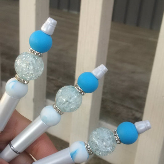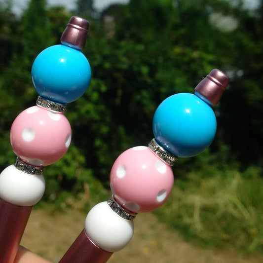 "Cotton Candy" Pink and Light Blue Beaded Pen