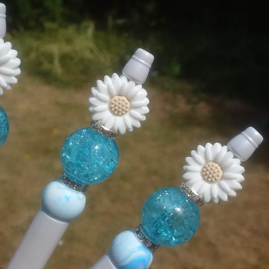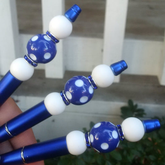 "Hoka Poka" Blue Polka-Dot Beaded Pen