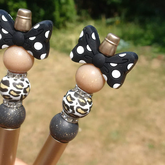"Pure Gold" Golden Leopard Print Heart Beaded Pen