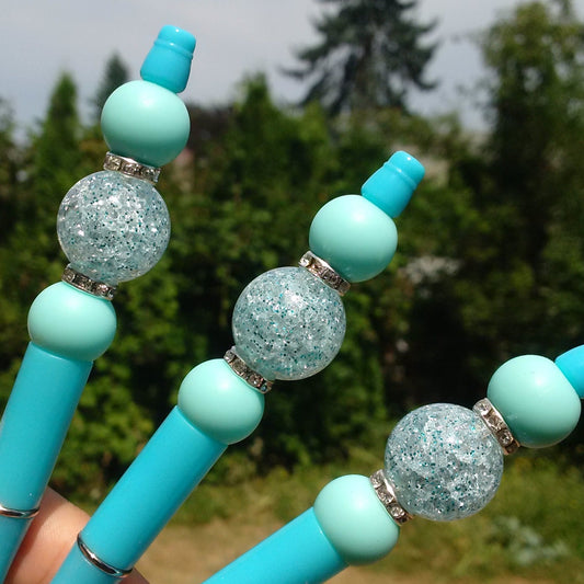 "Hoka Poka" Blue Polka-Dot Beaded Pen