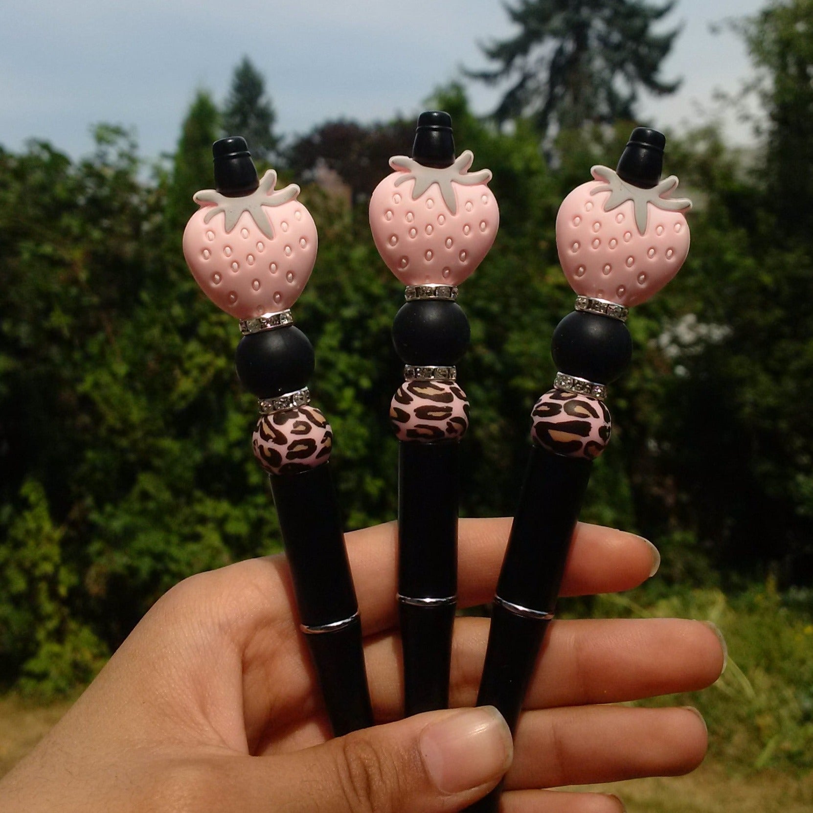 Check out this "Strawberry Burst" beaded pen—it's a real berry-licious treat! Perfect for any lover of the sweet and fruity side of life, this light pink strawberry-shaped pen is handmade with pink leopard beads, giving it an extra burst of flavor. Write on, strawberry friends!